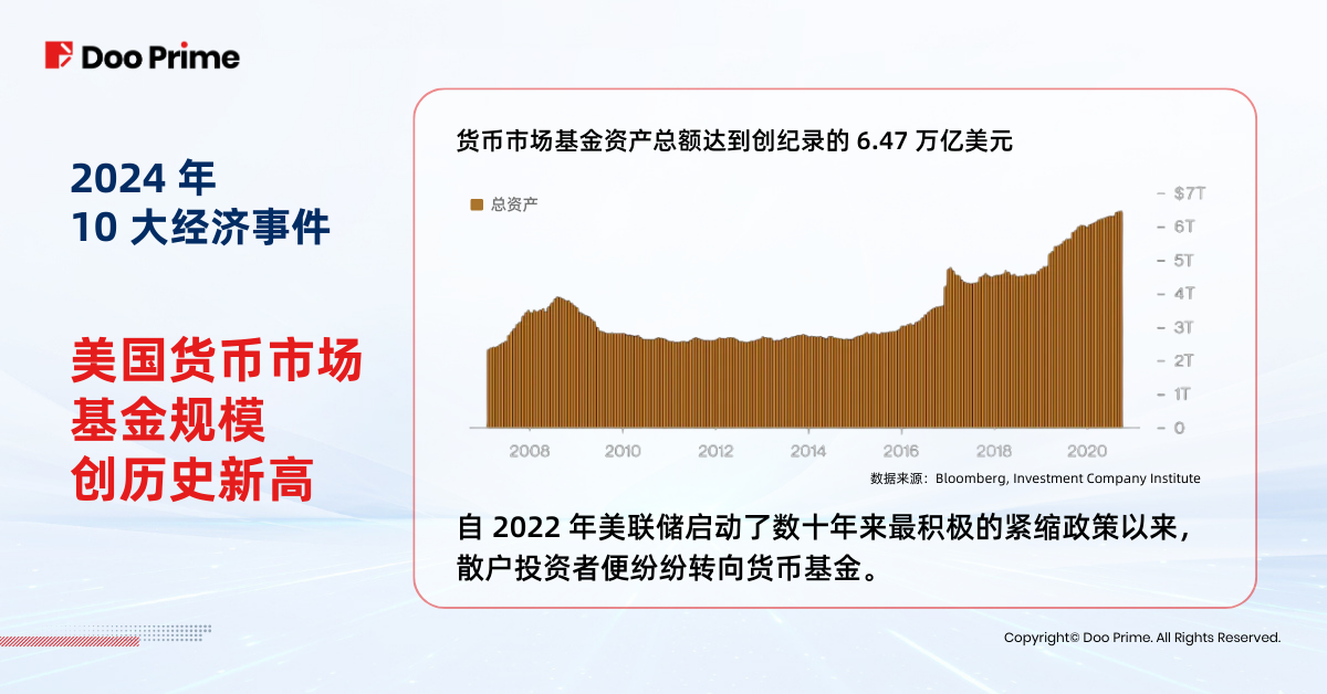 根据投资公司协会的数据显示,截至 10 月 9 日当周,约 110 亿美元流入美国货币市场基金,使其总资产规模达到创纪录的 6.47 万亿美元。摩根大通指出,尽管美联储在 9 月份下调了基准利率 0.5 个百分点,但货币市场基金仍吸引新资金流入,因为其收益率高于其他工具,尤其是银行存款。