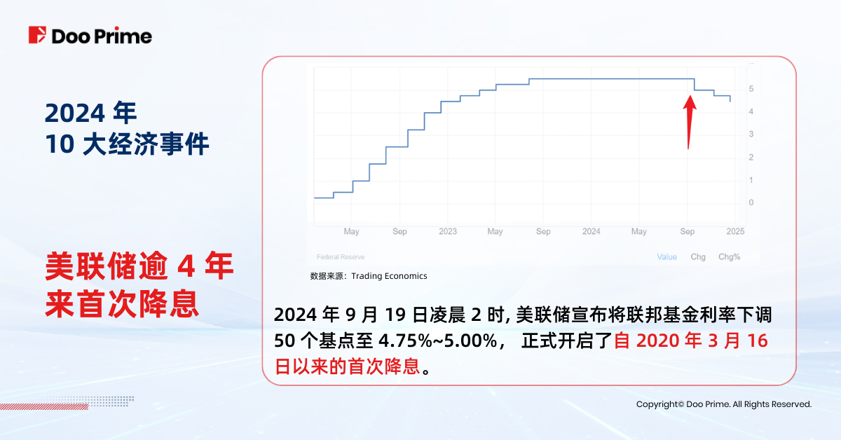 2024 年 9 月,美联储在连续加息后首次转向降息,宣布自 2020 年 3 月以来的首次降息。值得注意的是,美联储罕见地选择大幅降息 50 个基点,正式拉开宽松周期的序幕,提振了市场的乐观情绪。