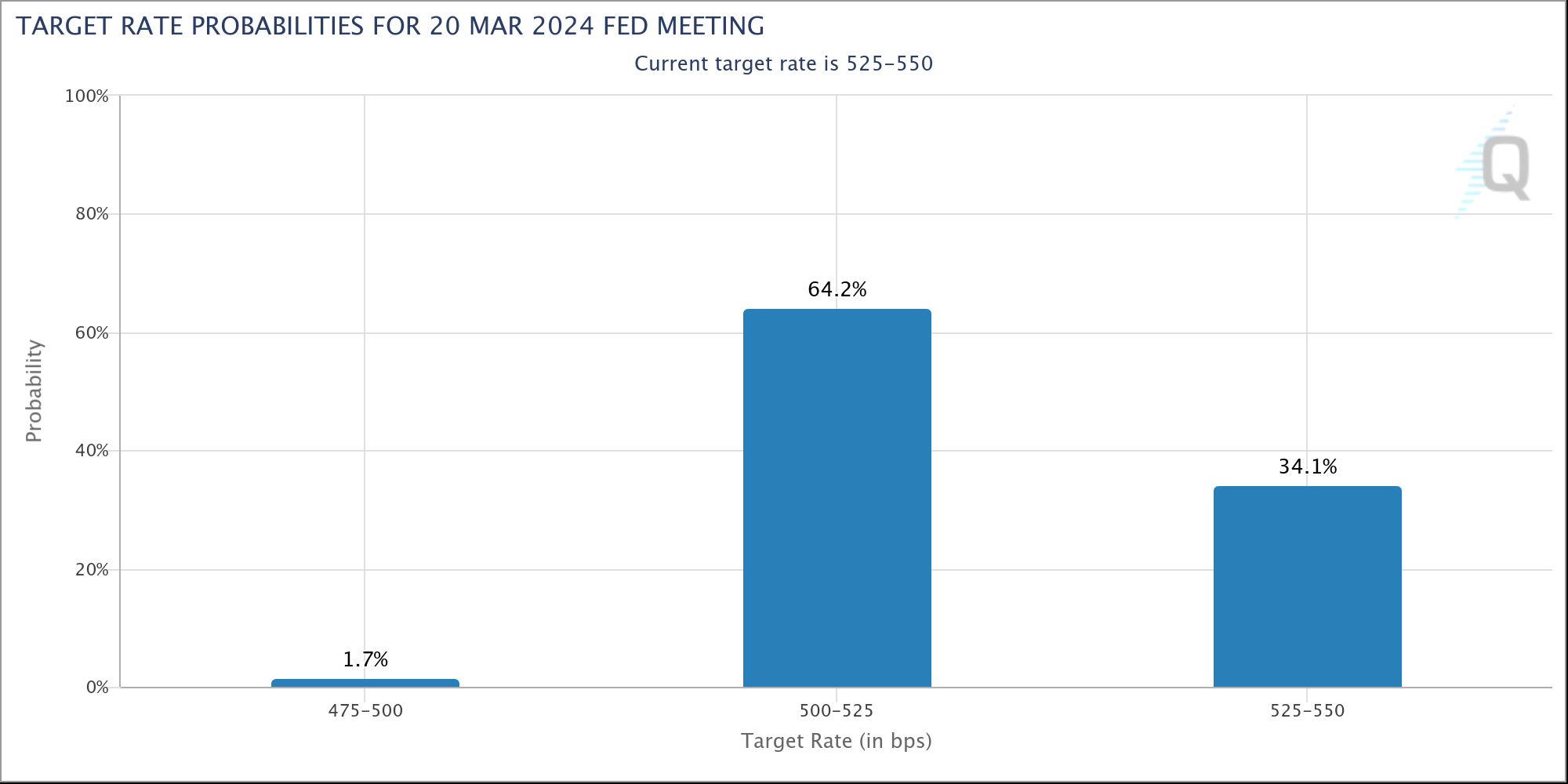 沃勒讲话之后,互换合约显示,市场对美联储最早 3 月降息的预期概率,从上周五的将近 80% 回落到约 65%。