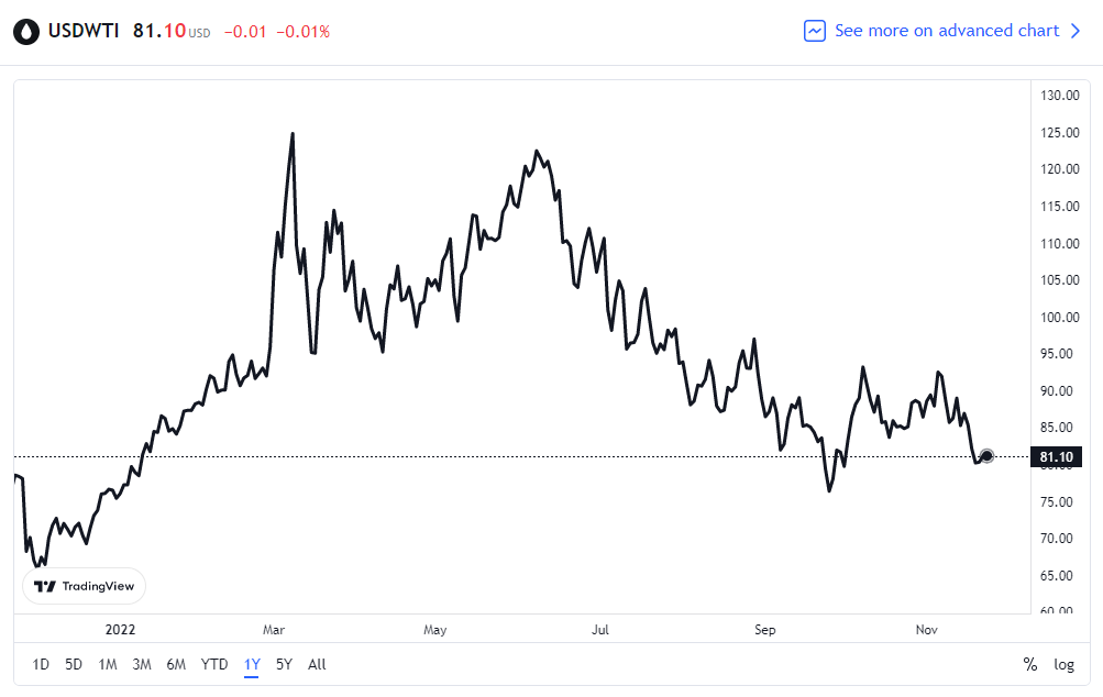 消息传出后,国际原油期货出现震荡,WTI 原油期货价格短线跌至 80 美元附近。