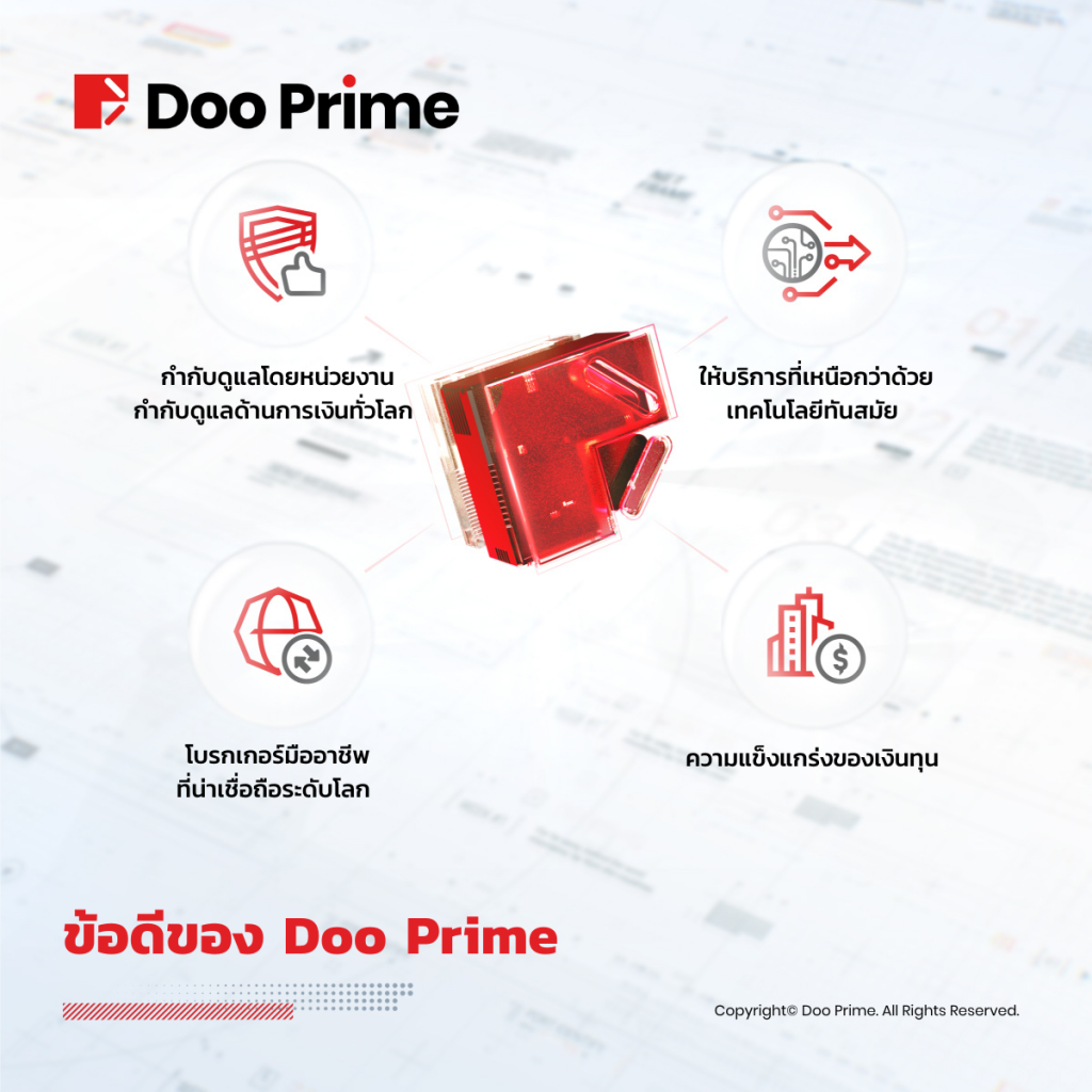 ด้วยการยอมรับจากธนาคารชั้นนำระดับโลกและจากการสนับสนุนจากลูกค้า Doo Prime ขอตั้งใจที่จะให้ความสำคัญกับลูกค้าต่อไป และจะทำให้ดีที่สุดเพื่อสร้างความปลอดภัยของการลงทุนให้เข้มงวดที่สุด