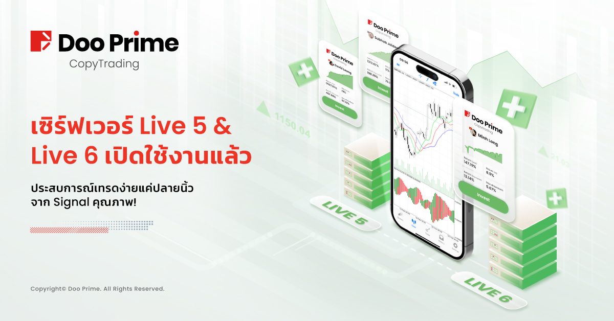 Doo Prime CopyTrading เซิร์ฟเวอร์ Live 5 และ Live 6 เปิดใช้งานแล้ว สัมผัสประสบการณ์เทรดง่ายแค่ปลายนิ้วจาก Signal คุณภาพ!