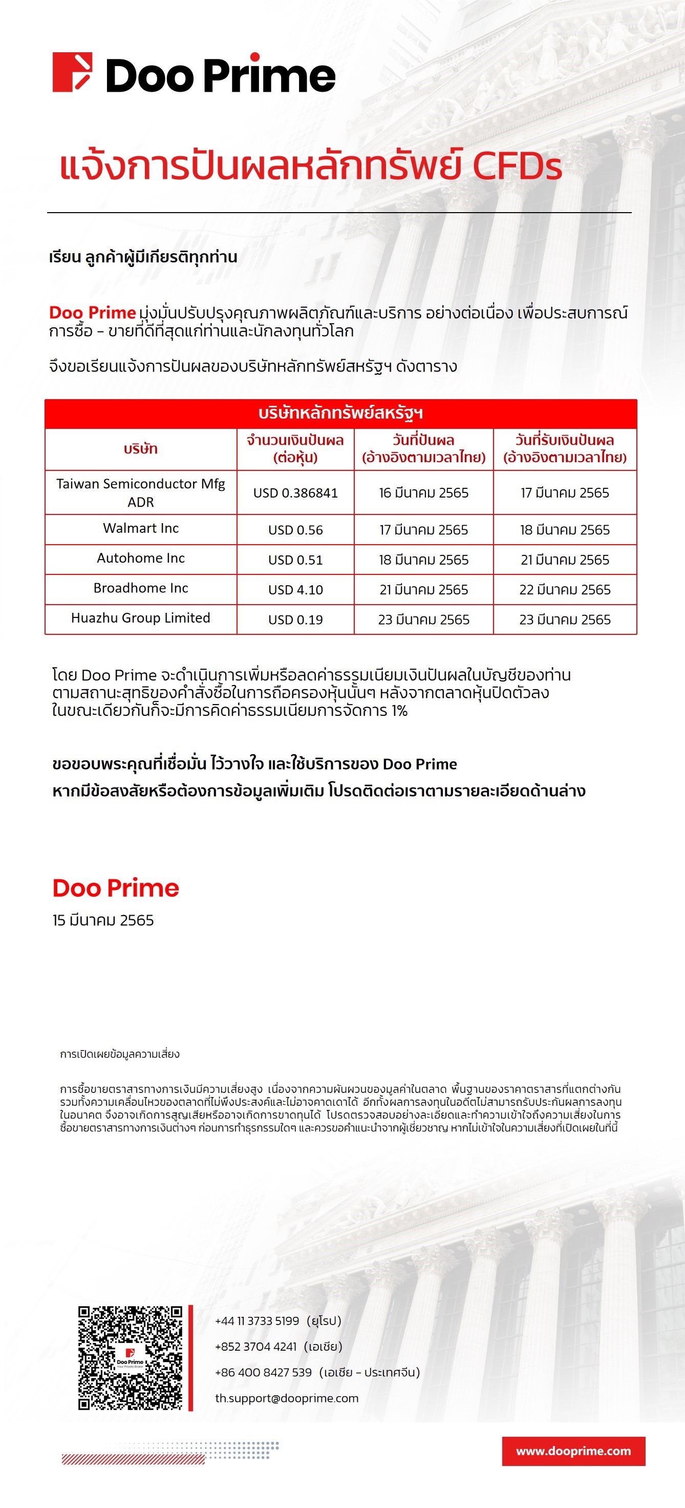 2022-03-15 | CFD , CFDs Dividend , ปันผลหลักทรัพย์ , หลักทรัพย์สหรัฐฯ