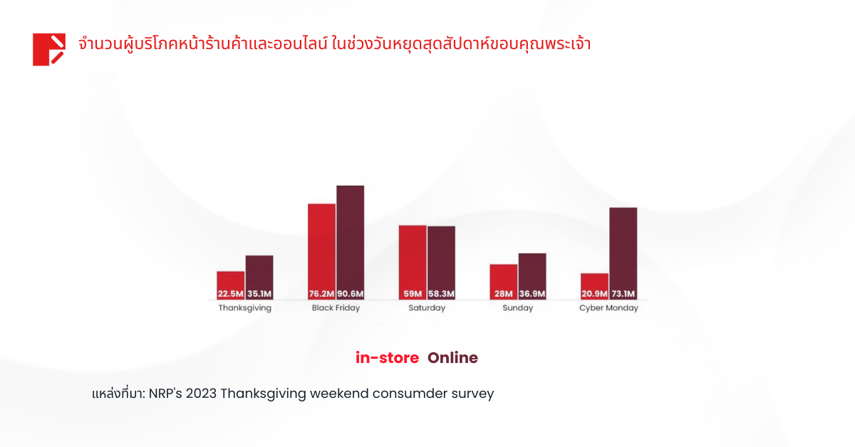 จากข้อมูลของสหพันธ์การค้าปลีกแห่งชาติ (NRF) ในปี 2566 มีผู้บริโภคถึง 200.4 ล้านคนที่ออกมาช้อปปิ้งในช่วงวันหยุด 5 วัน ตั้งแต่วันขอบคุณพระเจ้าจนถึงไซเบอร์มันเดย์ ซึ่งทำลายสถิติปี 2565 ที่มีจำนวน 196.7 ล้านคน