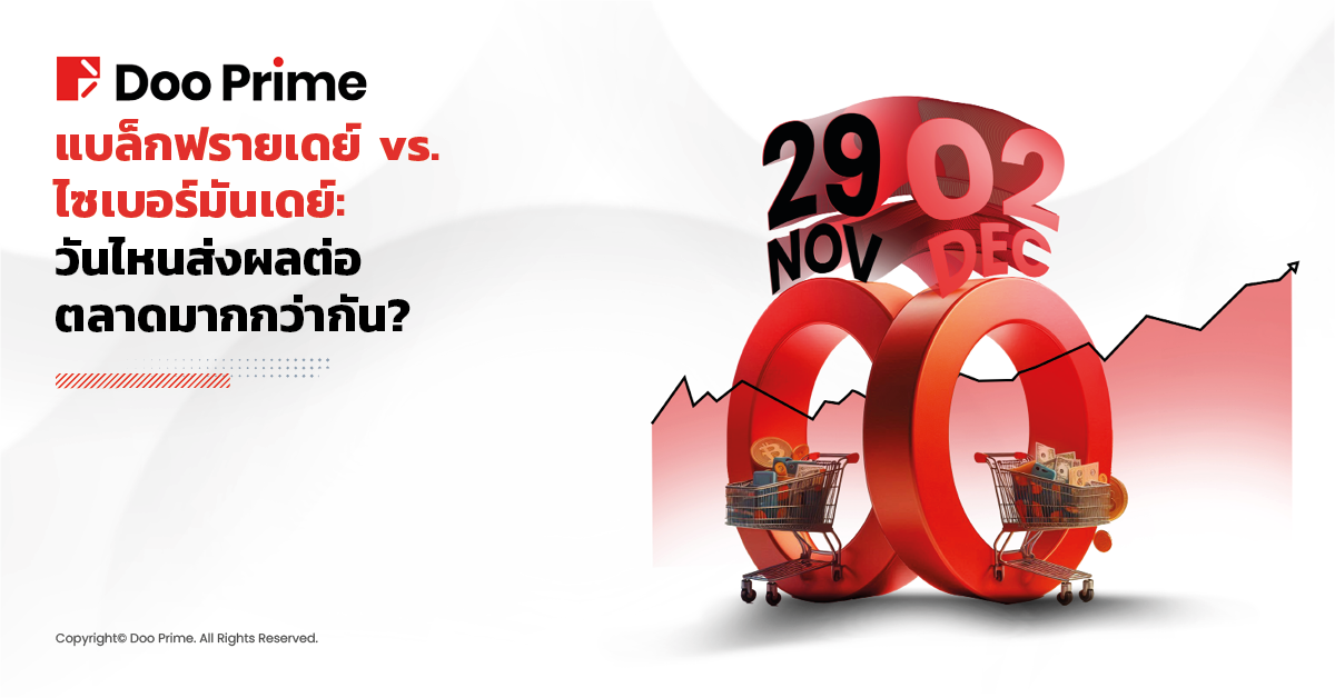 แบล็กฟรายเดย์ vs. ไซเบอร์มันเดย์ : วันไหนส่งผลต่อตลาดมากกว่ากัน? ทุกปี นักช้อปต่างรอคอยแบล็กฟรายเดย์และไซเบอร์มันเดย์อย่างใจจดใจจ่อ เพื่อคว้าข้อเสนอสุดพิเศษ